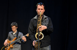 On Valentine's Day we went to a jazz concert. A great band, Groovie, played amusing songs by different performers. We really enjoyed the concert. This was our first time at a jazz concert. The concert took place at the Wam Design Center where we could also visit an exhibition of different paintings. We took photos of the musicians' while they were playing. It was really funny. We enjoyed that day:]